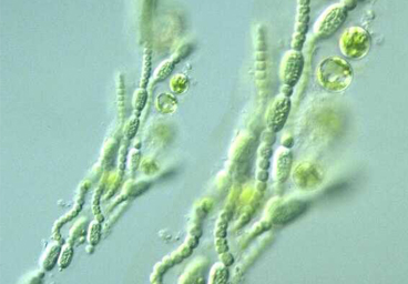 Microbes usually live as single cells. But Nostoc went one step forward: many species form chains of cells that have specialised. Some cells in these filaments contain the blue-green pigment chlorophyll - they are responsible for photosynthesis, i. e. the extraction of energy from light, water and carbon dioxide. Others are brownish and are responsible for nitrogen fixation and locomotion. Some form a thick cell wall to survive drought.