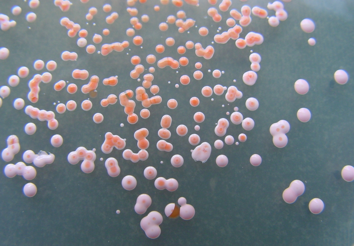 Halobacterium salinarum, Microbe of the Year 2017, belongs to the archaea - primordial forms of life that resemble bacteria but are actually more closely related to plants and animals. They are often adapted to unusual habitats, for example hot springs, extremely acidic waters, places without oxygen or - like H. salinarum - to high salt concentrations. The microorganism grows in salines and brines. Thanks to special channel proteins in the cell envelope, H. salinarum can adapt its salt content to the external conditions. It even survives in salt crystals for hundreds of years. Since the microbes contain red pigments, they make salt lakes and sea salt extraction plants appear reddish-purple. The pigments (carotenoids) of Halobacterium salinarum accumulate in the food chain: Small brine shrimp feed on the microorganisms, and they are again eaten by flamingos, turning their feathers pink.