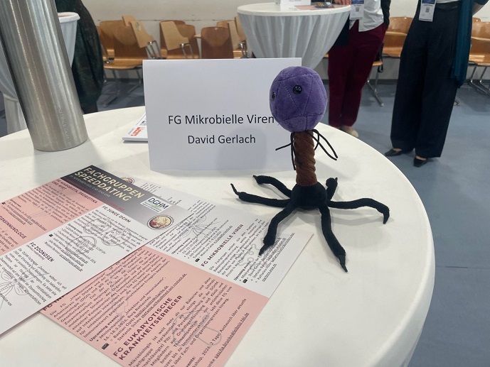 We and our viral mascot recently represented the special group at the "Fachgruppe speed dating" organized by the "Junge DGHM" at the DGHM meeting 2025 in Jena. We loved the concept of offering a low-barrier entry to connect with young scientists, but we hope that the general concept and visibility of the event will be improved in future iterations.