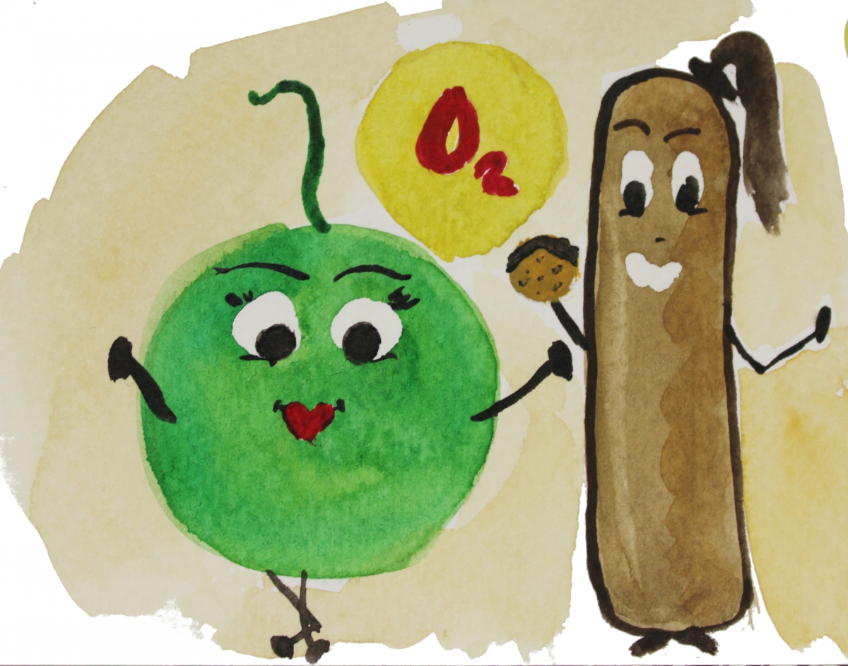 In unserem Labor bilden Synechocystis („Synthia“) und Pseudomonas („Mona“) eine solche Lebensgemeinschaft (s. Abbildung). Synthia ist ein Cyanobakterium und produziert Sauerstoff und Zucker (in der Abbildung dargestellt als Keks), die Mona zum Überleben benötigt. Ohne Mona würde Synthia keinen stabilen Biofilm bilden können und so viel Sauerstoff bilden, dass er für sie selbst giftig wäre. Mona verbraucht diesen jedoch und so leben sie zusammen in einem Biofilm, der durch Synthia grün gefärbt ist: eine echte Mikrobenfreundschaft.