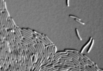 Die einzelnen Bakterien können sich auf zwei verschiedene Arten bewegen: Zum einen nutzen sie haarförmige Anhängsel (Pilus) aus tausenden Proteinuntereinheiten. Jeder einzelne Pilus kann sich verlängern, an Oberflächen anheften und dann wieder verkürzen. So entsteht eine Kraft, die die Zelle nach vorne zieht. Zum anderen können die Bakterien gleiten. Dabei heften sie sich mit Hilfe von Proteinkomplexen an den Untergrund. Diese Proteinkomplexe entstehen am vorderen Zellpol, binden an den Untergrund und wandern dann an das hintere Ende der Zelle. So schiebt sich die Zelle nach vorne. Beide Bewegungsmechanismen wiederholen sich kontinuierlich und bringen einzelne Zellen und große Zellgruppen koordiniert voran. „Es ist faszinierend, die unterschiedlichen Bewegungsmuster von M. xanthus in den räuberischen Schwärmkolonien und während der Fruchtkörperbildung zu beobachten“, so Myxobakterien-Forscherin Anke Treuner-Lange vom Marburger Max-Planck-Institut.